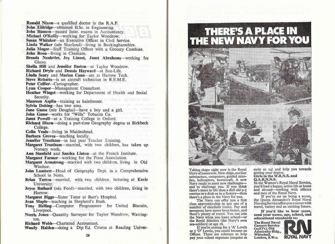 Taking shape right now is the Royal Navy of tomorrow. New ships, nuclear submarines, computers, guided missiles, helicopters, hovercraft. A new Navy ready to meet new challenges - and to challenge you. If you think there's more to life than a dull old 9-5 routine at a desk or in a factory - then there's a place in the Navy for you.