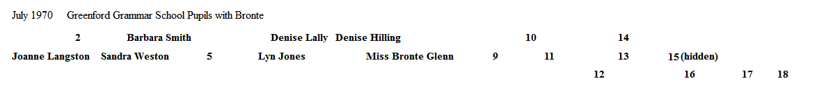 Joanne Langston, Sandra Weston, Barbara Smith, Lyn Jones, Denise Lally, Denise Hilling, Miss Bronte Glenn